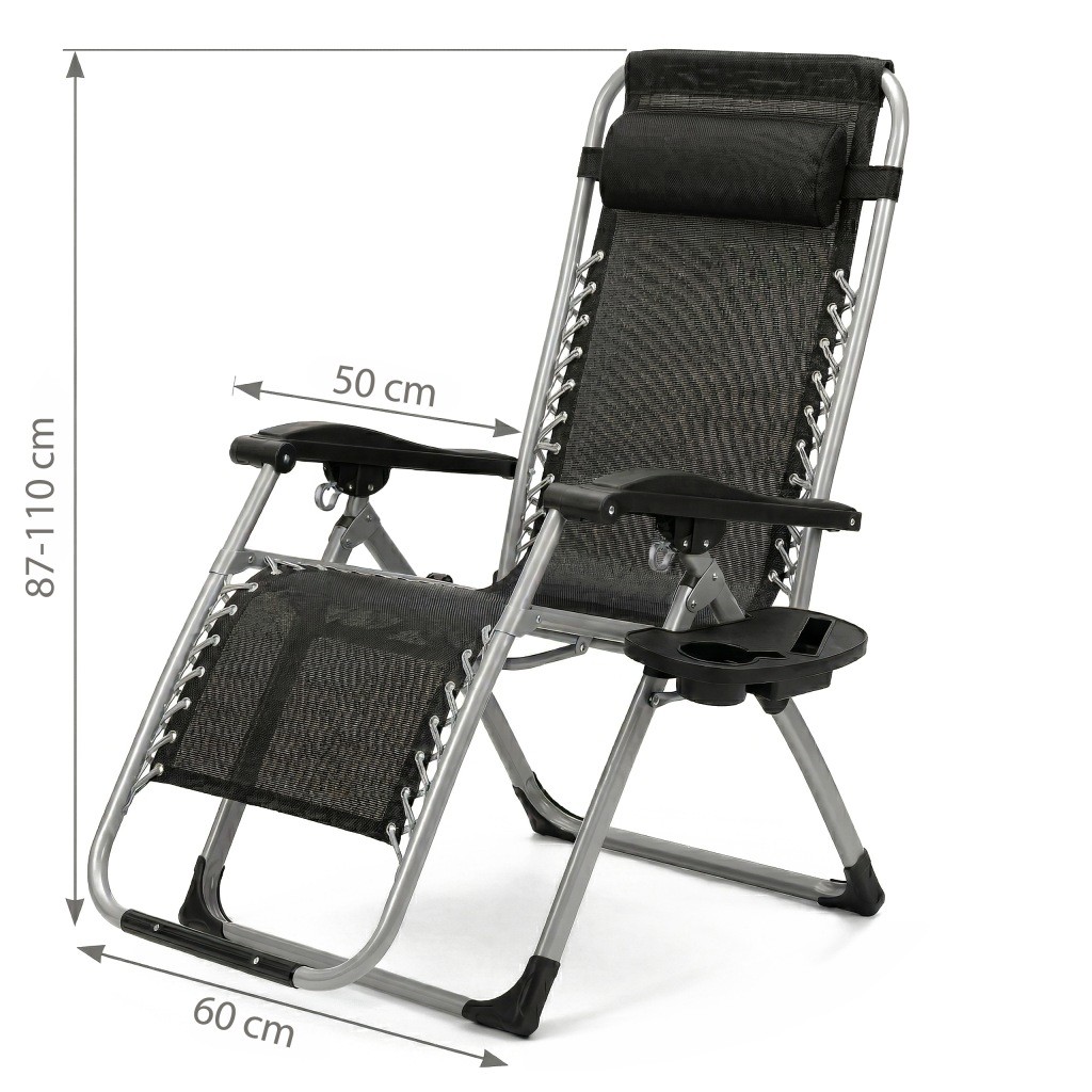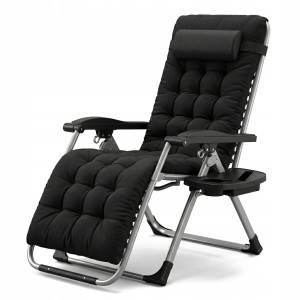 Leżak Składany Zero Gravity czarny ogrodowy lekki z poduszką regulacją
